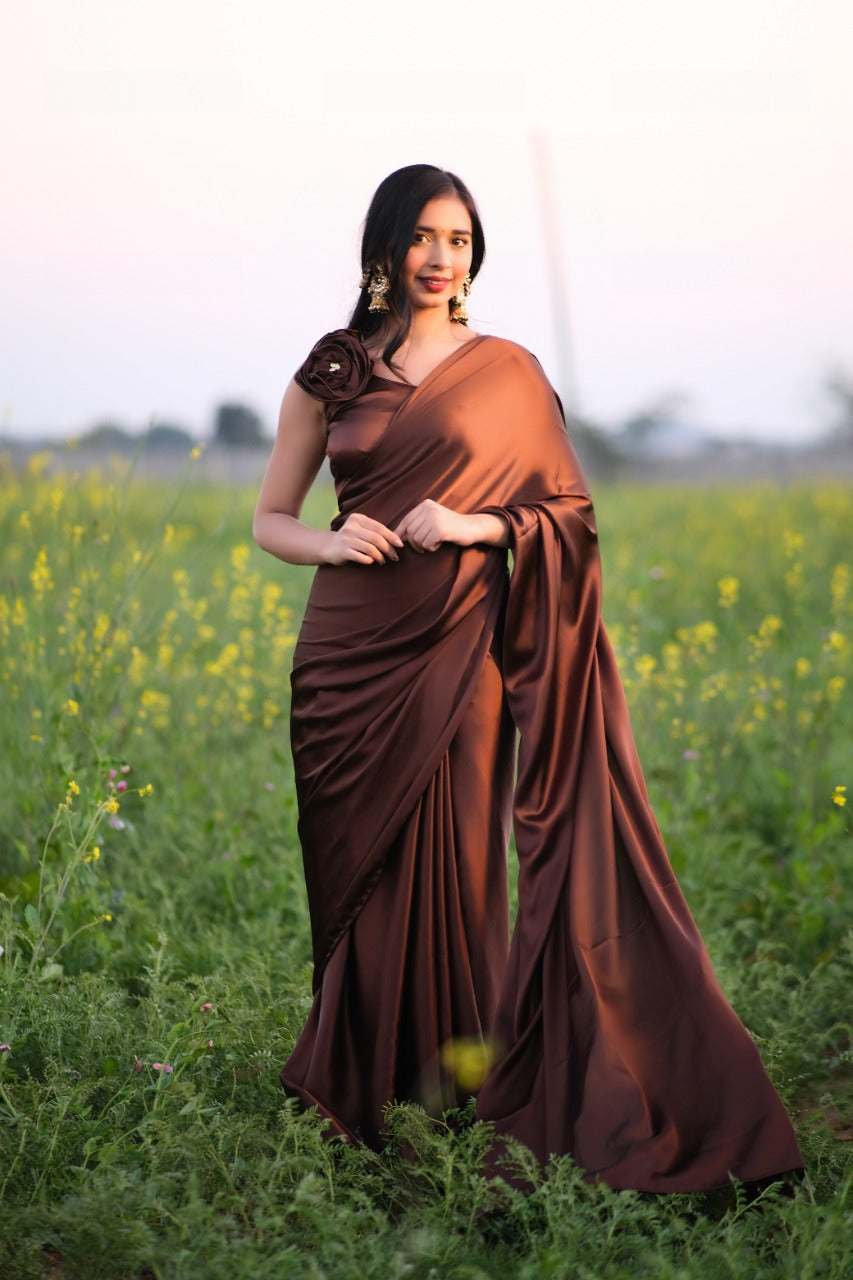 Cappuccino One Minute Satin Saree