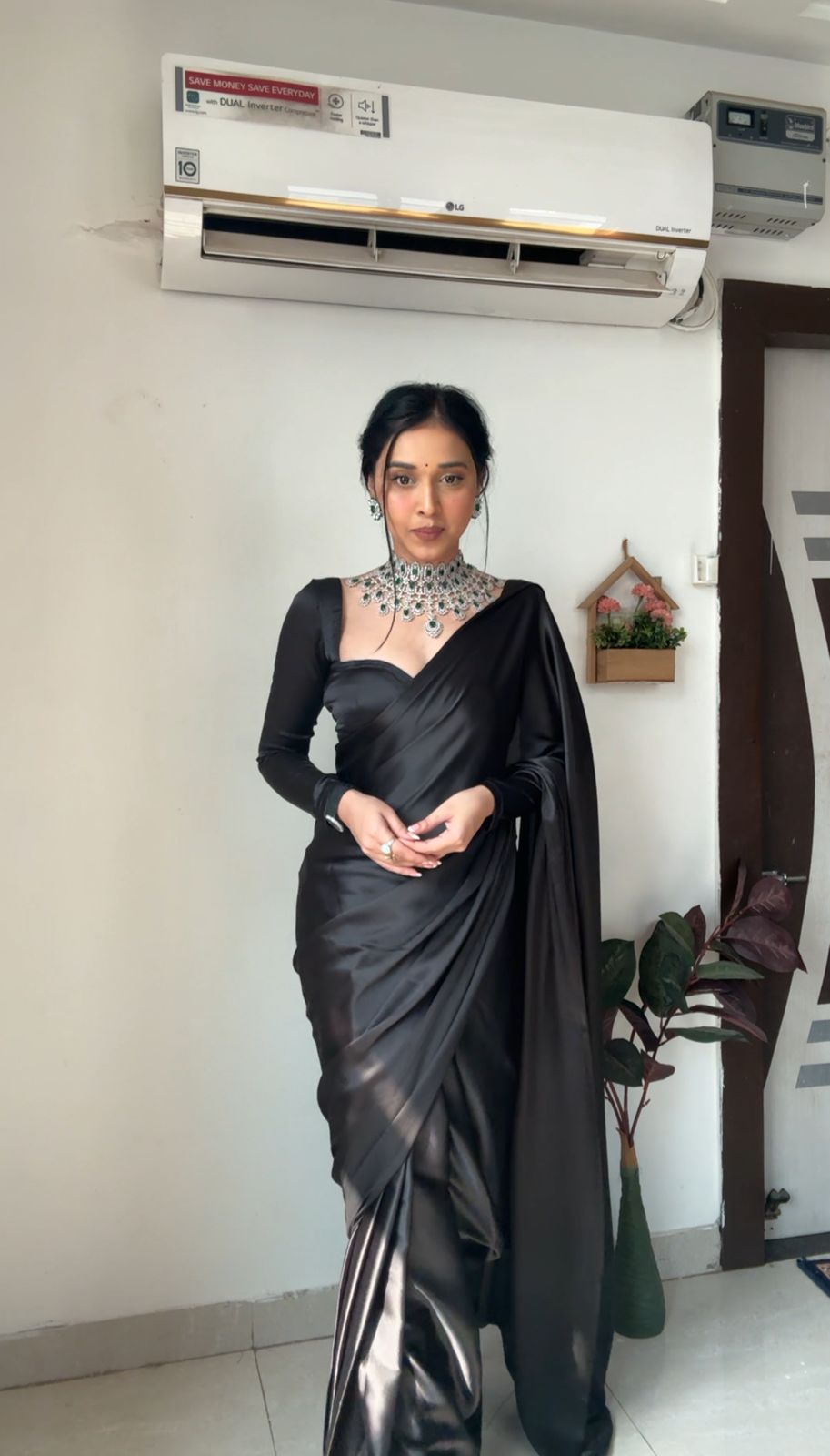 Ebony Black Satin One Minute Saree