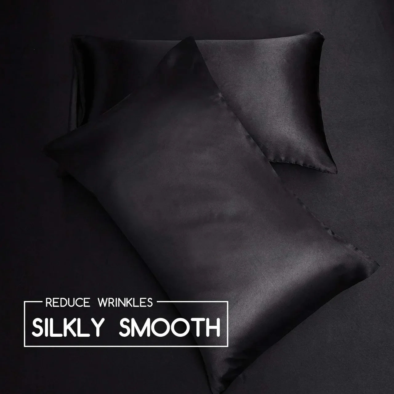 Black Satin Beauty PillowcaseAbout this item【Goodbye To Messy Morning Hair】With our satin pillowcases for hair and skin, you can rest easy knowing your hair will be soft & smooth upon waking in the morning. The silk satin pillow case allows your hair to remain frizz and tangle free and reduces hair breakage.【Enhance Your Beauty Sleep】Sleeping on our hypoallergenic non-irritating satin pillowcase can help your skin, too. With less friction tugging at your skin as you sleep, you will experience fewer sleep lines which can equal fewer wrinkles over time.【Zipper Free】No zipper closures poking you in the face as you sleep. MR&HM satin pillowcases are made without a zipper closure, instead using an envelope closure design. The silky pillowcase holds your pillow securely in place while you rest.【Comfortable Sleep】Satin fabric is an excellent option for comfortable sleep. The silky fibers are great for temperature regulation. This keeps our satin pillowcase cooler while you are sleeping, allowing you to get a good night’s rest.【Affordable Luxury】Compared with silk pillowcase, satin fabric is more durable. MR&HM satin pillow cases are high quality and extravagant, which are luxury at an affordable price.