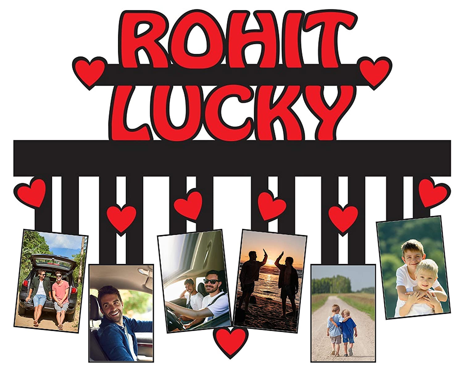 Personalized Wooden Photo Frame with Name Collage