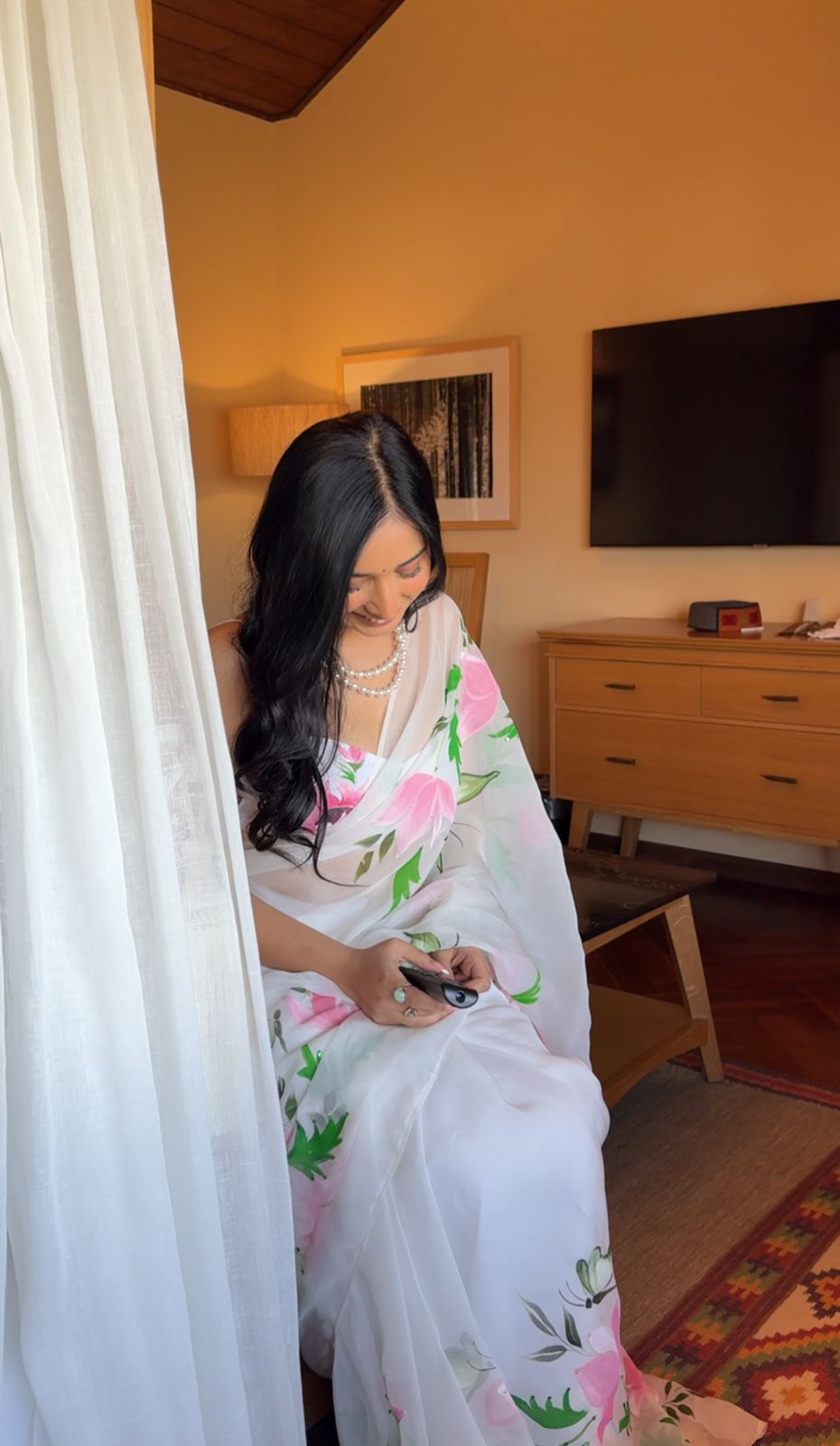 Dahlia Flower Hand Painted Pure Organza One Minute Saree