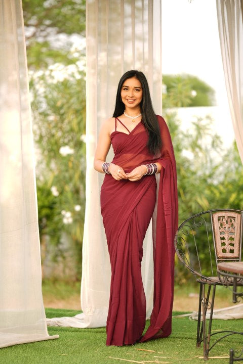 Unstiched Claret Wine Georgette Saree