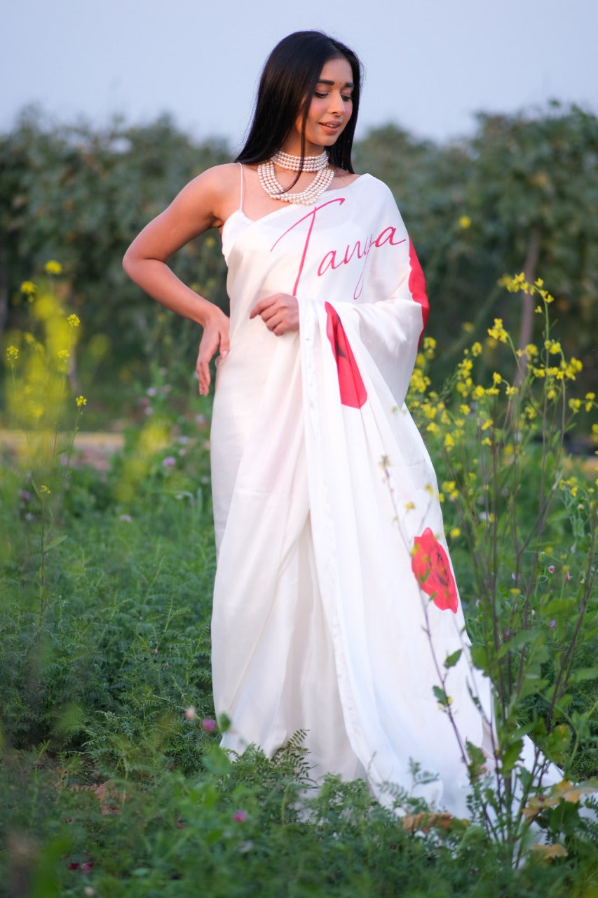 Unstitched Customised Vanilla ROSE Satin Saree