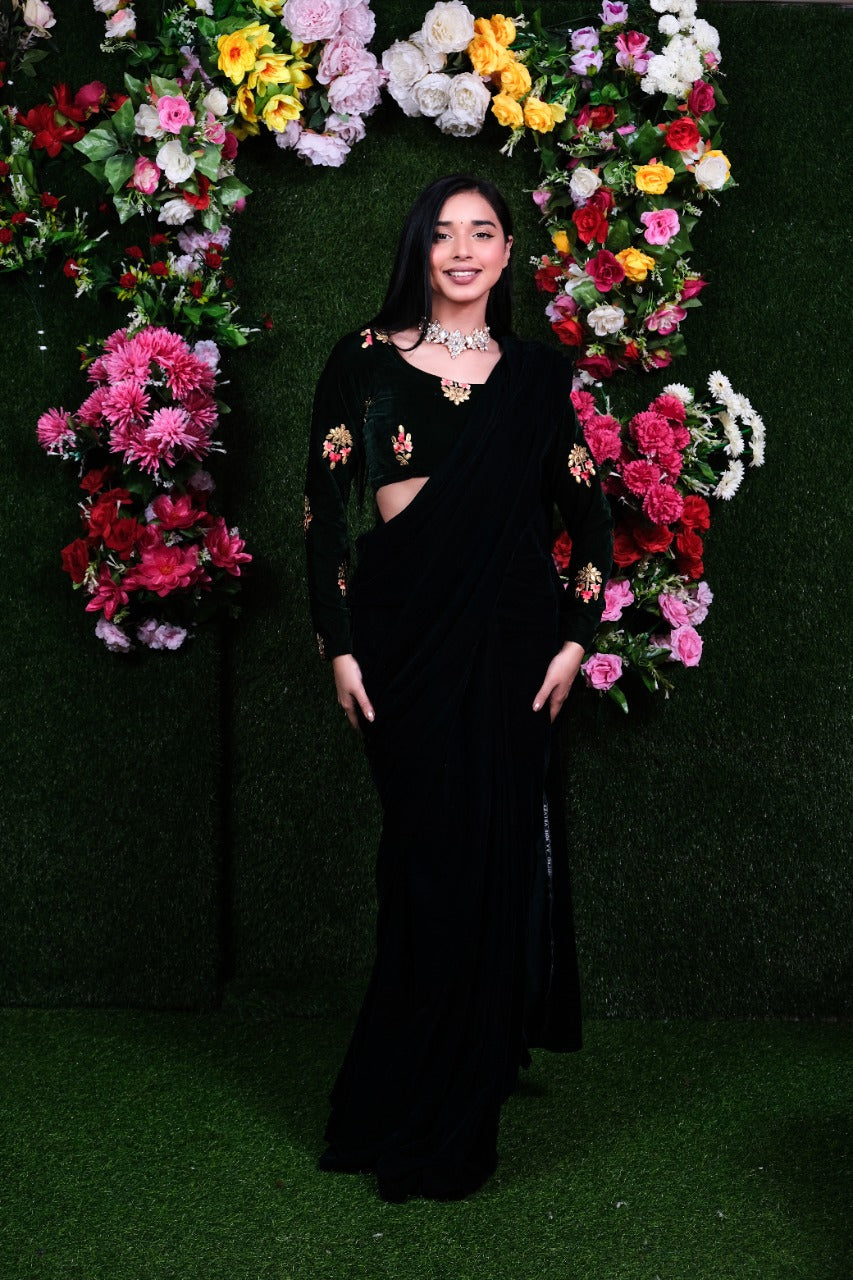 Unstitched Queen Forest Velvet Saree