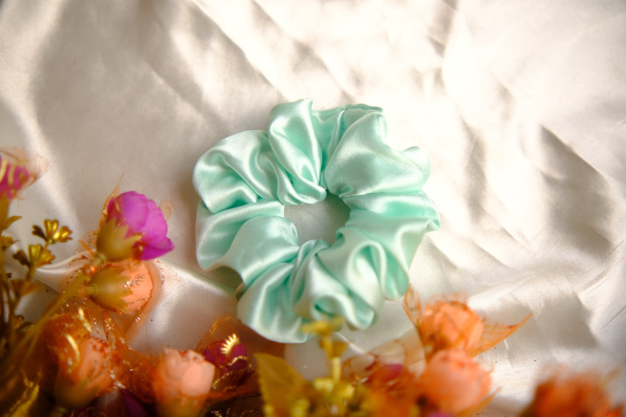 Aquamarine Satin Scrunchie
