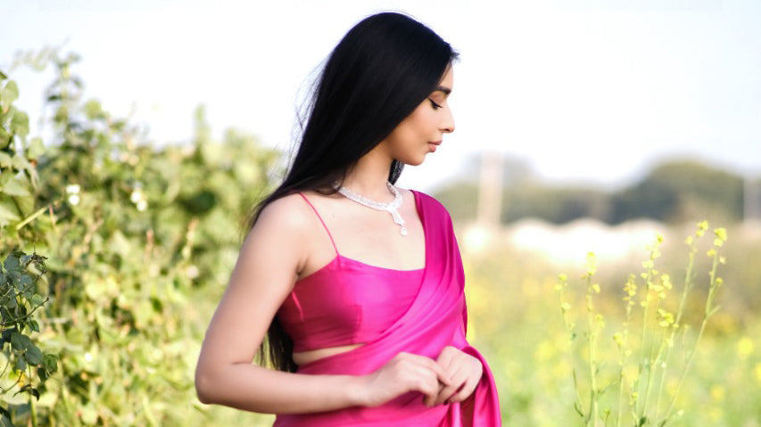 Barbie pink satin Stitched Blouse