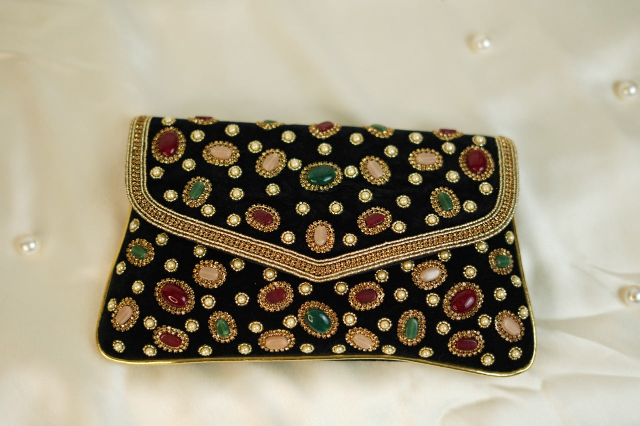 Black velvet Stone Clutch