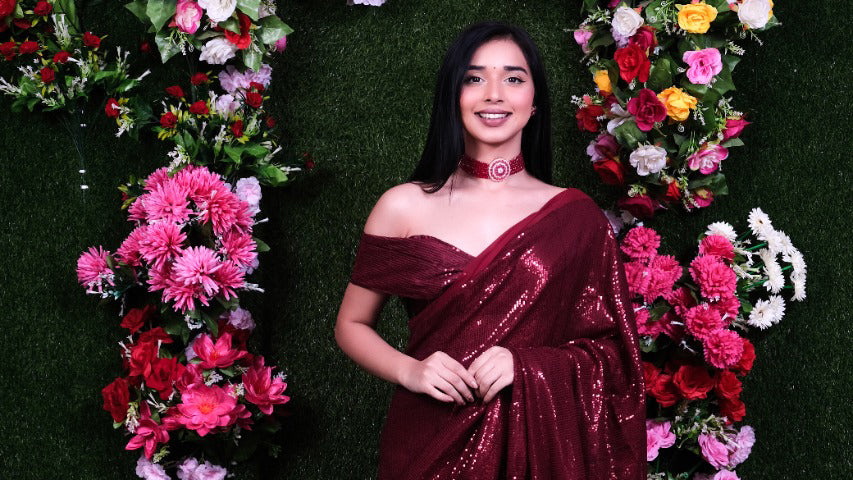 Red Wine Filmfare Sequence Stitched Blouse